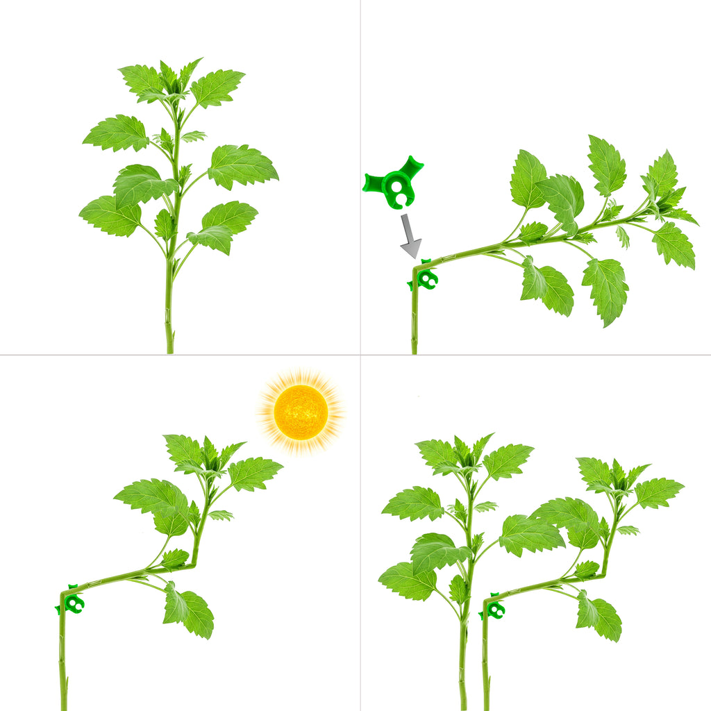 Verbesserte Lichtzufuhr: Die Clips ermöglichen es Ihnen, die Triebe so auszurichten, dass sie mehr Sonnenlicht erhalten, was das Wachstum und die Blütenbildung positiv beeinflusst.